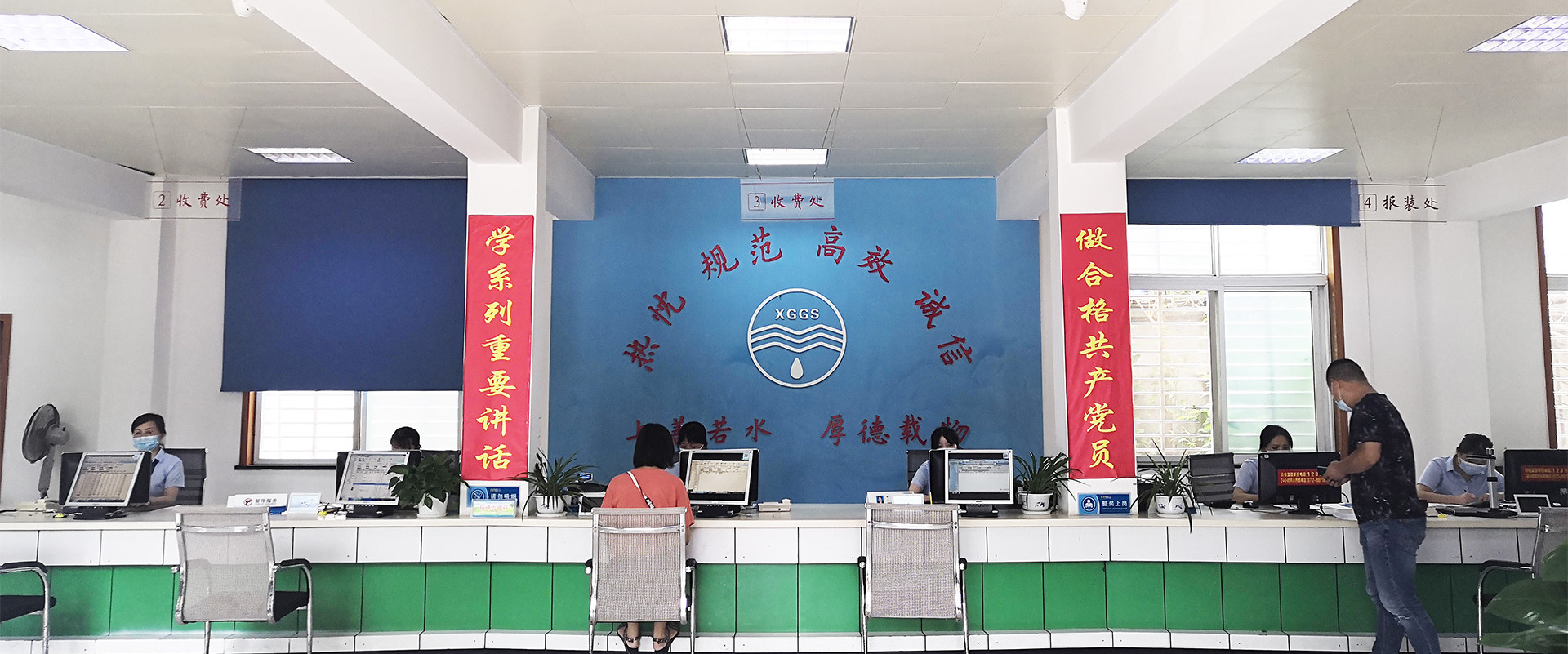 客服中心分別在市民之家、區(qū)便民服務(wù)中心、玉泉路、城站路、南臥路設(shè)有3個(gè)營(yíng)業(yè)廳,為城區(qū)10萬(wàn)余戶(hù)客戶(hù)提供水費(fèi)繳存、用水報(bào)裝、業(yè)務(wù)咨詢(xún)等窗口服務(wù)。為方便客戶(hù),營(yíng)業(yè)廳推出了窗口繳存、預(yù)存代扣、網(wǎng)上銀行、手機(jī)銀行、自助終端結(jié)算、銀行代扣、支付寶結(jié)算、微信支付等多種結(jié)算方式。
